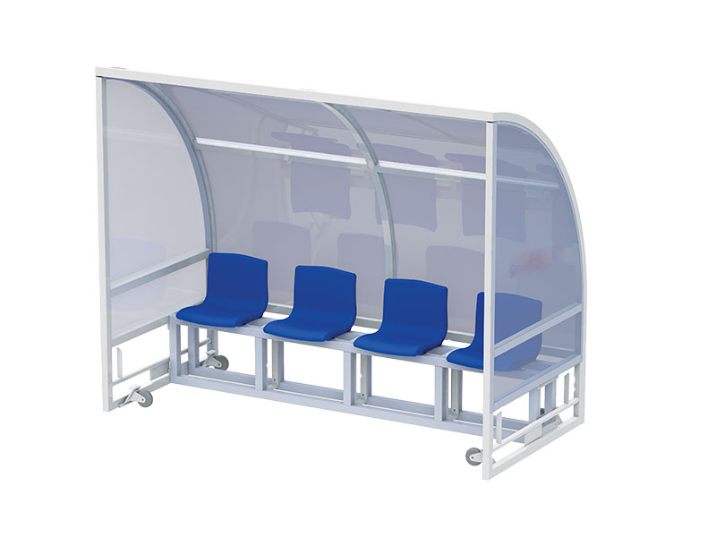 ●材質(zhì):支架全鋁合金型材制作,座椅由共聚塑料制作, 遮陽板為2.2mm厚PC板材,可完全回收重復(fù)利用, 配裝 304 不銹鋼螺絲。